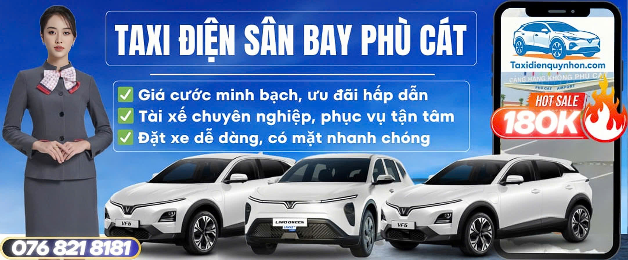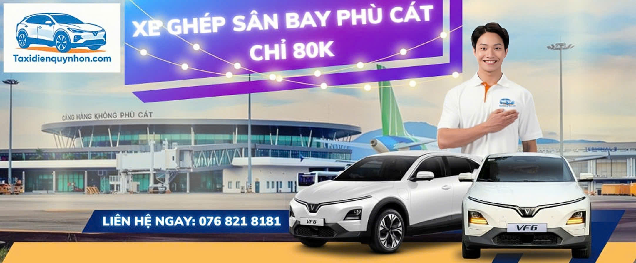 Taxi điện Quy Nhơn tự hào là đơn vị tiên phong trong lĩnh vực đưa đón sân bay Phù Cát đi trung tâm Phường Quy Nhơn và các huyện, xã lân cận tỉnh Bình Định cũ (nay thuộc Gia Lai mới). Với đội ngũ nhân viên chuyên nghiệp, tận tâm cùng dàn xe đời mới, hiện đại, chúng tôi cam kết mang đến cho bạn dịch vụ đưa đón an toàn – tiện lợi – chi phí tiết kiệm nhất.